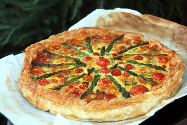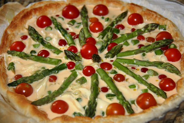 ResponderEliminarEstoy visitando tu blog y la verdad es que no paro de ver cosas muy ricas e interesantes, con lo cual con tu permiso creo que me quedare por aquí, viendo todo lo que nos preparas. Este quiche que has preparado tiene una pinta francamente buenísima, con esos tomatitos y los espárragos trigueros. Que pena no poder degustarlo.