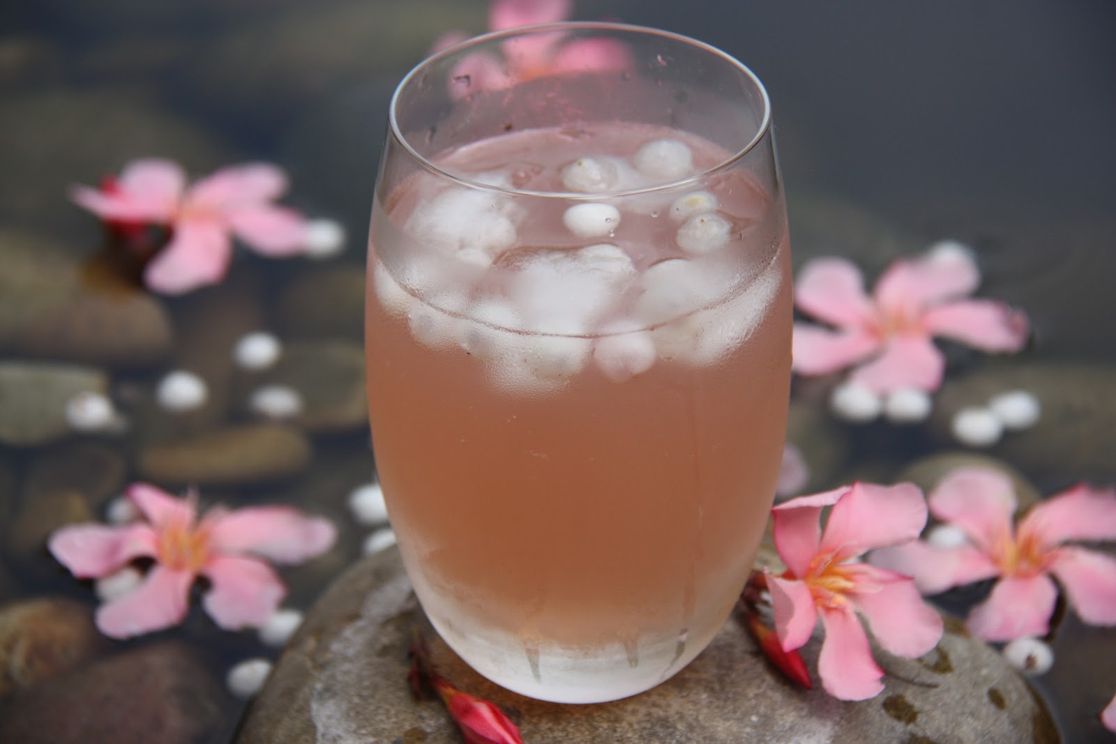 Não resisti à cor rosada do líquido resultante da cozedura das camarinhas, nem ao seu aroma frutado. Na altura que fiz a geleia de camarinhas retirei um pouco da calda e deixei-a arrefecer. Adicionei água e açúcar e levei ao frigorífico.